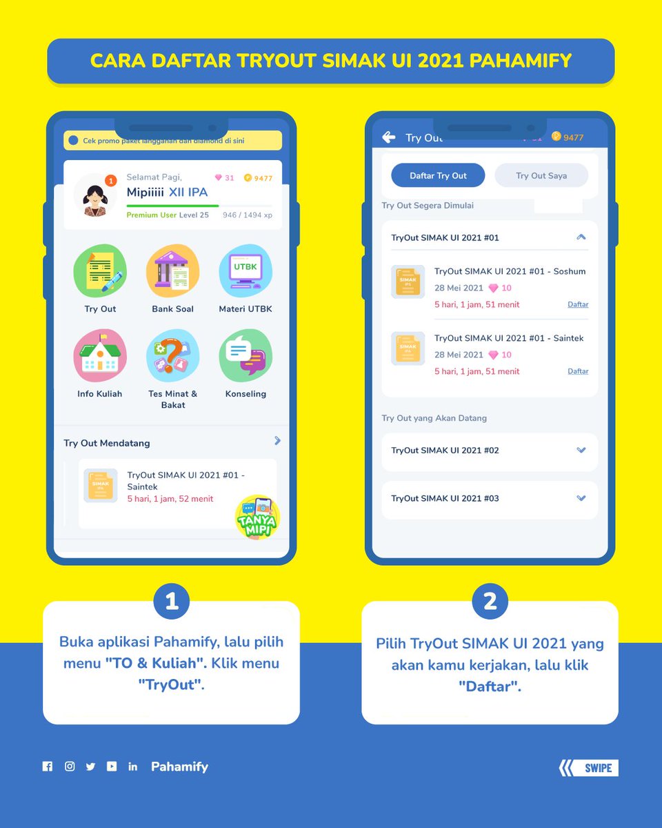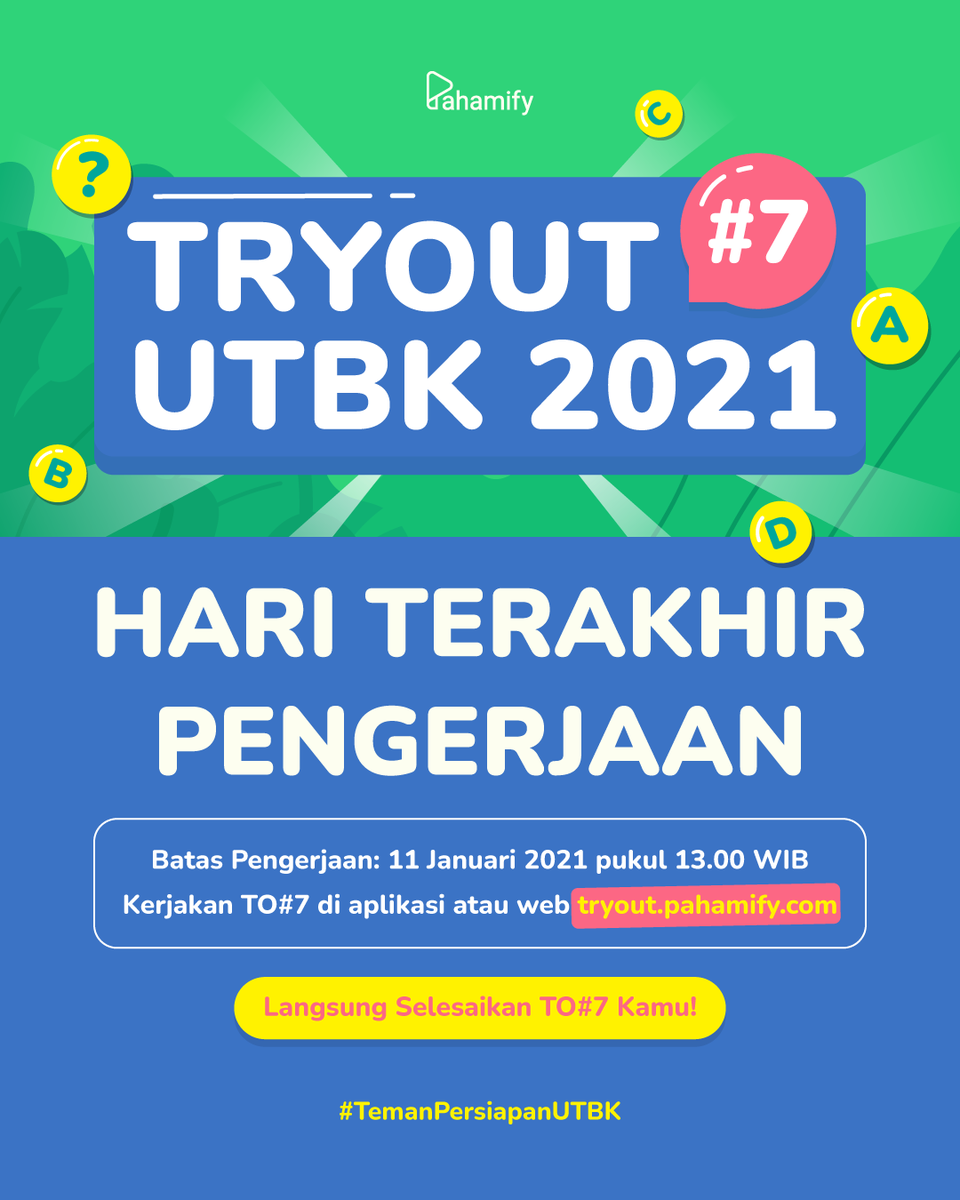 Pahamify Kejarbarengpahamify Auf Twitter Gratis Tryout Online Utbk Pahamify Ke 3 1 Follow Twitter Pahamify Retweet Like Tweet Ini Reply Dengan Hashtag Utbkuy Mention 5 Temen 2 Download Pahamify Tryout Utbk Pilih Peminatan Daftar Sekarang Pilih from pbs.twimg.com Check spelling or type a new query. Maybe you would like to learn more about one of these? We did not find results for: