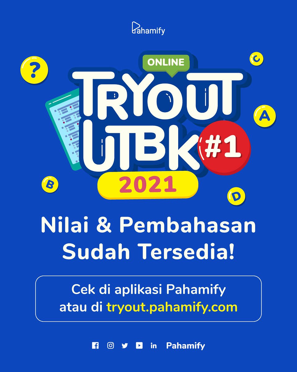 Panggil Aja Mipi Semuabisasemuapaham On Twitter Pendaftaran Tryout Akbar Utbk 2021 Dibuka Yuk Ikutan Latihan Utbk Yang Bikin Paham Dari Ilmupedia Pahamify Pendaftaran 19 Februari 19 from pbs.twimg.com We did not find results for: Check spelling or type a new query. Maybe you would like to learn more about one of these?